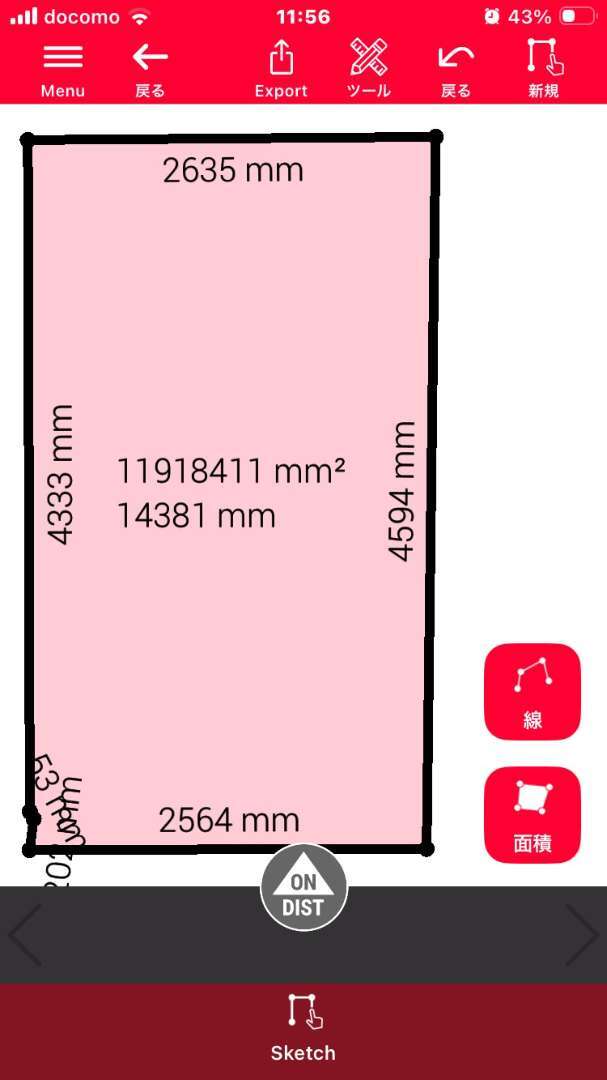 下記写真は、壁が斜めになっている現場をLeica DISTO X6で実測し、