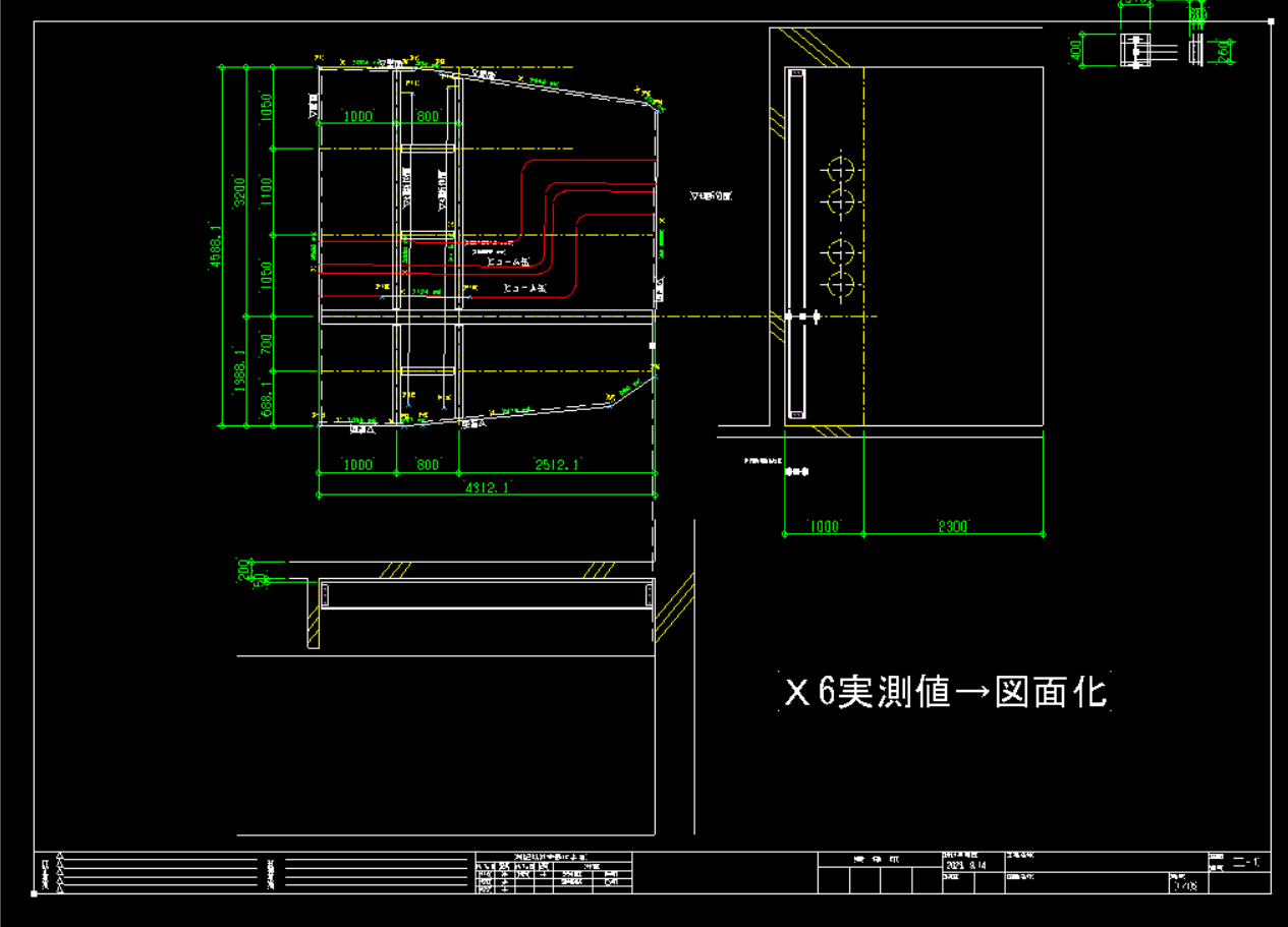 店舗 改修工事一式 札幌市|スーパー 床補強 鉄骨工事 いびつ形状の地下室壁をライカX6にて実測し、CAD上に送り図面を作成した上で製作に着手しました。天井解体後に空調ダクトの位置が判明したため、梁方向を再検討し配置を変更して製作を進めています。搬入は資材階段を使用する必要があったため、3分割構造として製作。地下室で組立を行い、ウインチを使用して取付を実施しました。また、天井へできる限り近接させるため、ジャッキおよびレバーブロックを用いて精度良く施工 ボルトアップにて施工完了。 竣工日 2025/10/ 場所 北海道札幌市 施工内容 1階床補強 地下室取付 構造 S補強 1 / 1 前の施工事例 その他建築 旭川市|倉庫 増築工事 次の施工事例 店舗 札幌市|タイヤ庫 胴縁加工